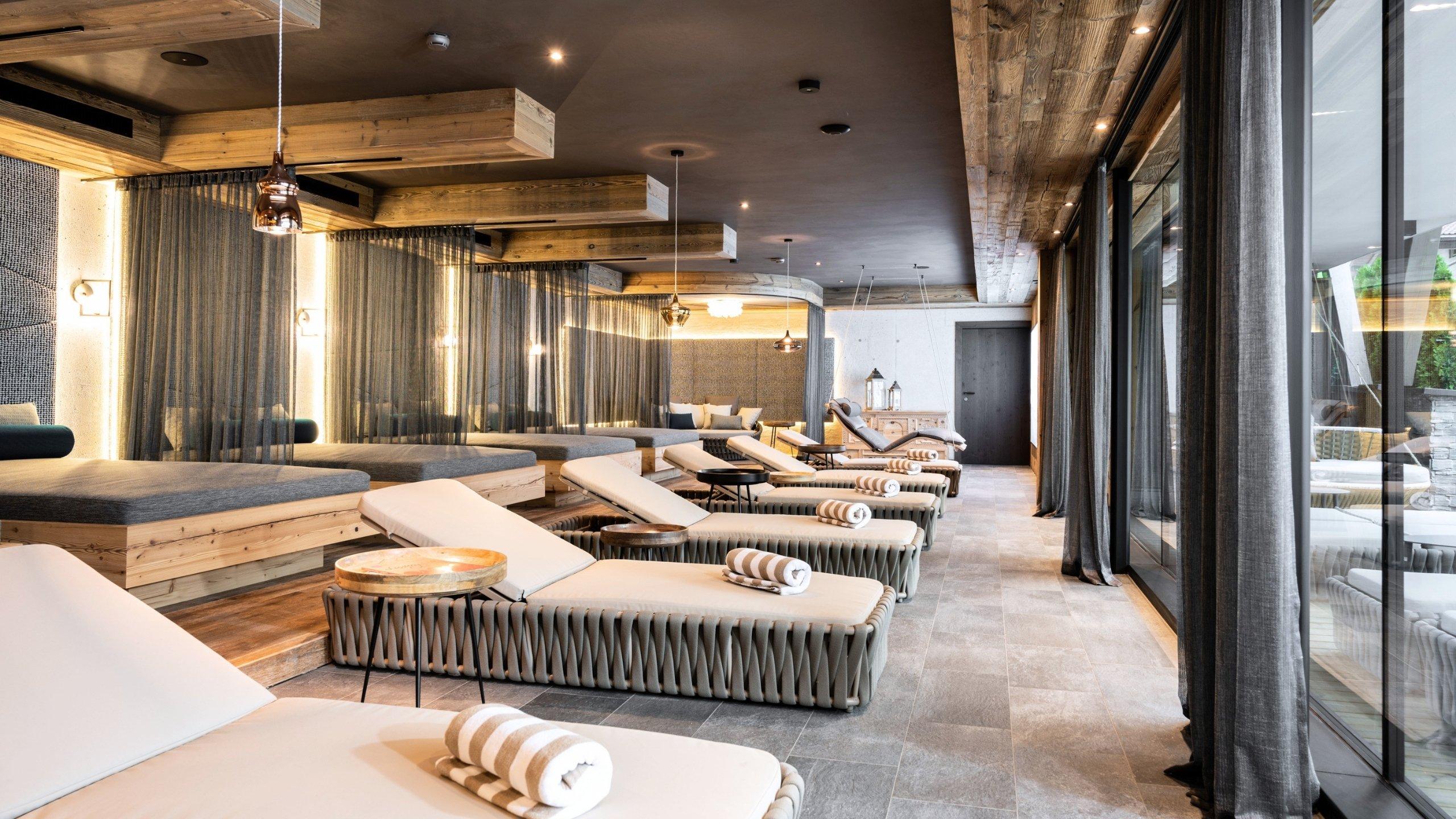 Over 1,200 m² of wellness facilities, including indoor and outdoor pools, an adults-only sauna area with five saunas, and plenty of cosy spots for personal retreat and relaxation
